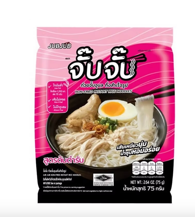 Non-Fried Instant Rice Noodles ก๋วยจั๊บอุบล สูตรต้นตำหรับ จั๊บจั๊บ 75g.
